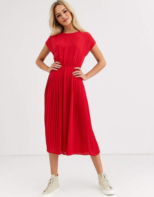 Red pleated midi dress new arrivals