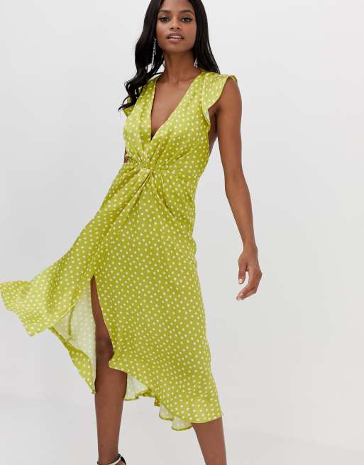 Satin polka dot midi dress new arrivals