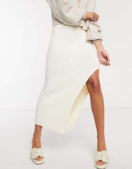 Cream ribbed midi skirt new arrivals