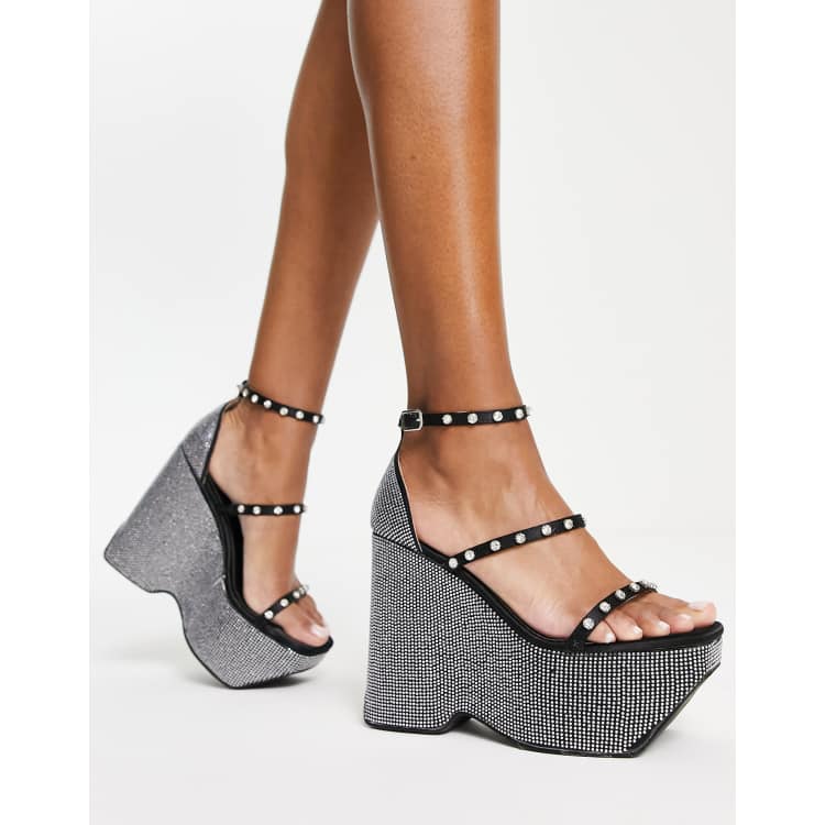 Black and silver wedge sandals new arrivals