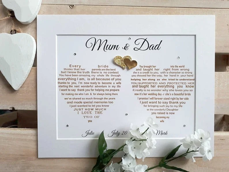 Mother and father of bride gifts new arrivals