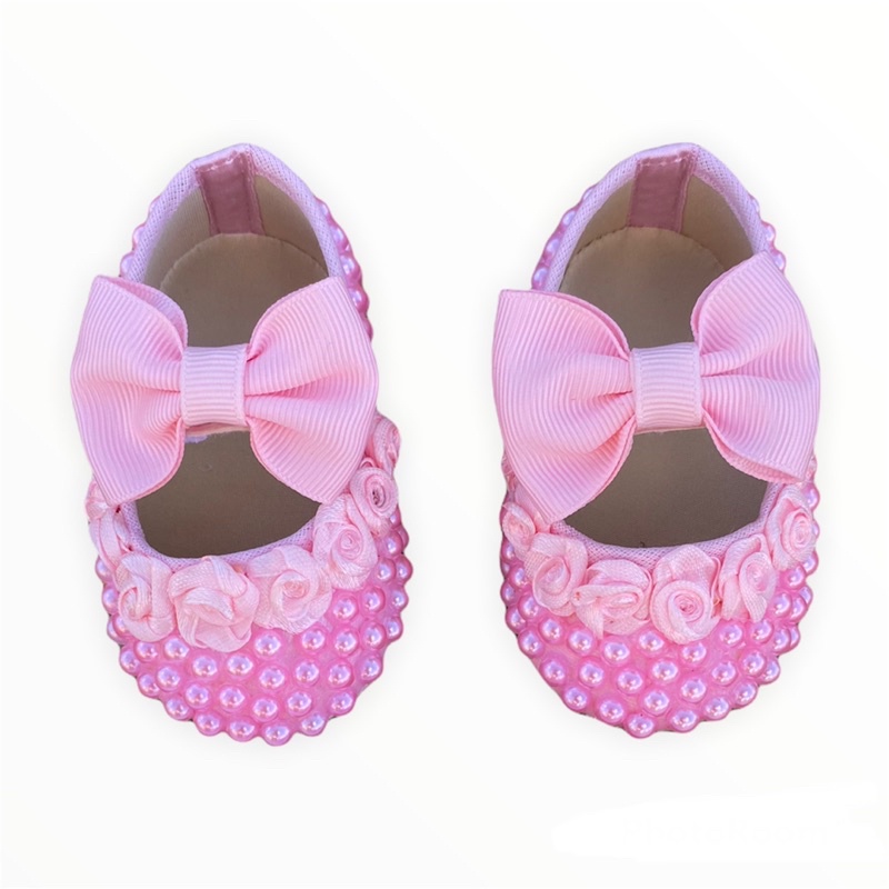 Sapatinho de bebe rosa com perola new arrivals