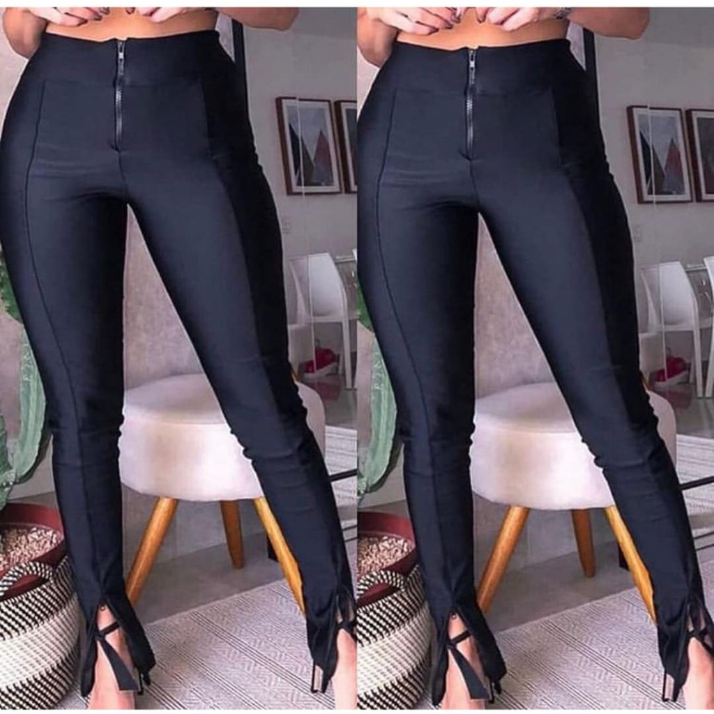 Product Name: Calça legging preta com ziper new arrivals