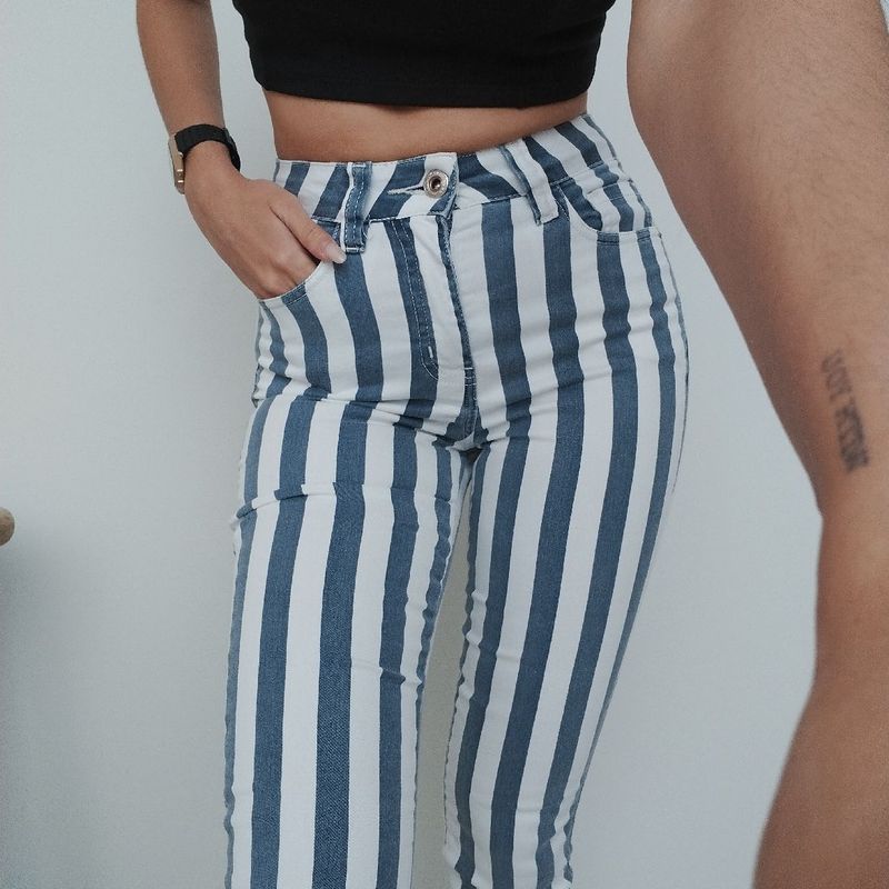 Calça jeans listrada feminina new arrivals