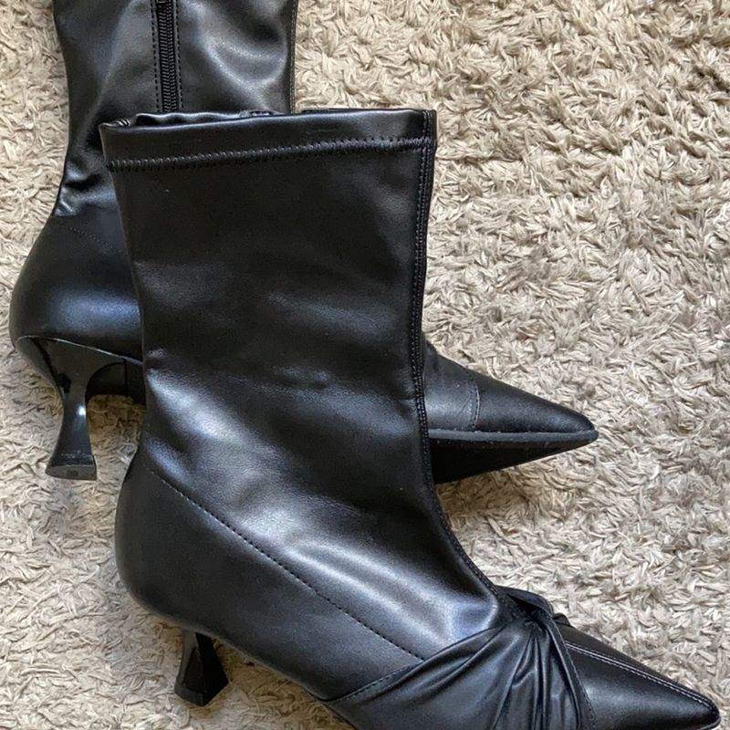Bota feminina com salto fino satinato new arrivals