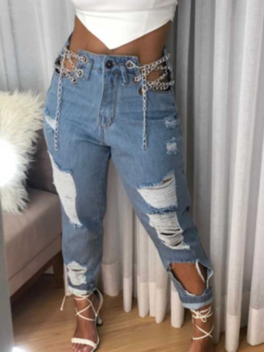 Calça jeans com corrente feminina new arrivals