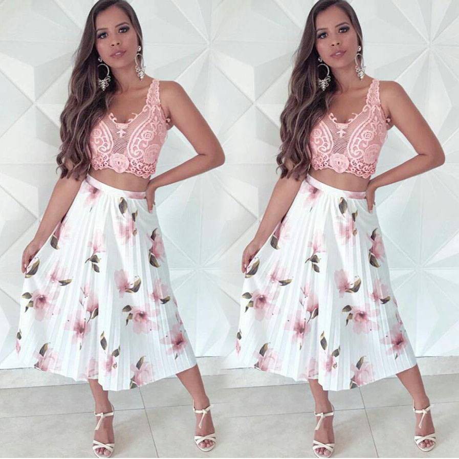 Saia plissada floral new arrivals