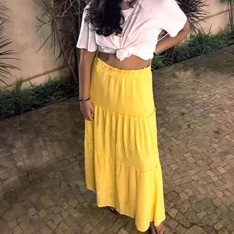 Saia longa amarela new arrivals