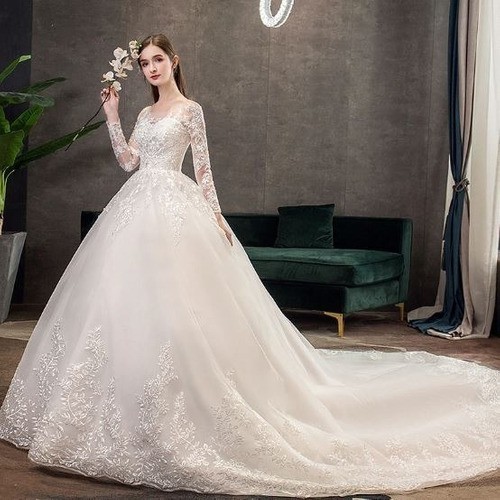 Vestido de noiva renda manga longa rodado princesa importado new arrivals
