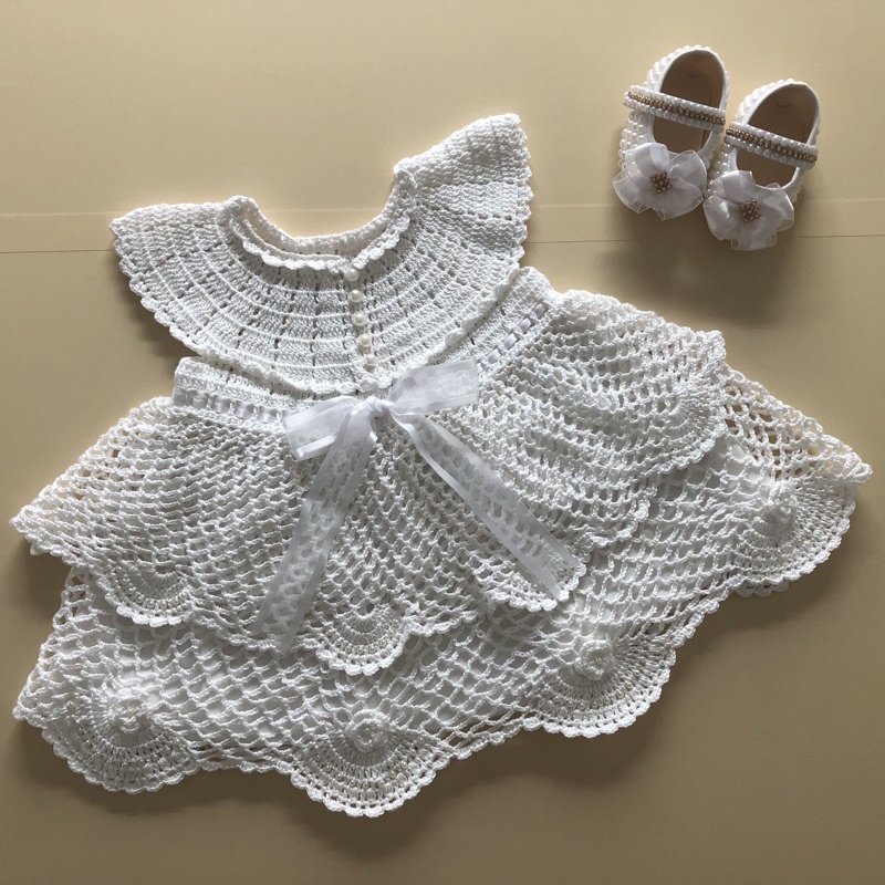Vestido de batizado em croche new arrivals
