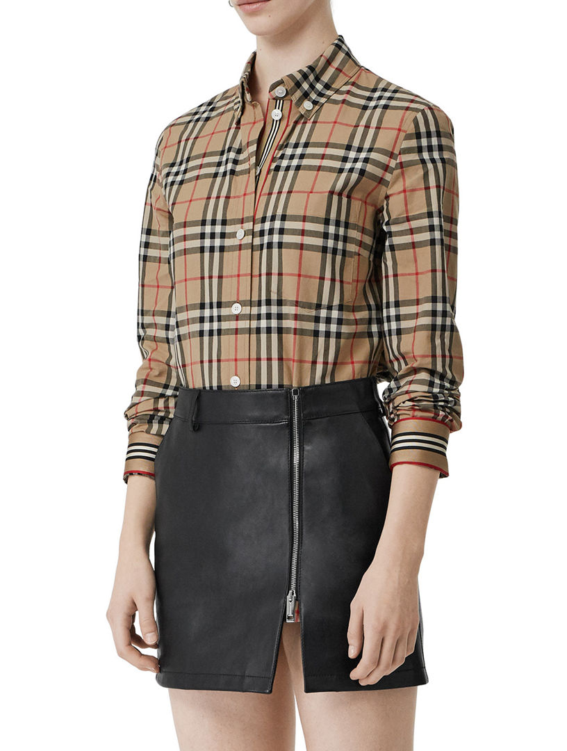 Product Name: Vintage check and icon stripe cotton shirt dress new arrivals