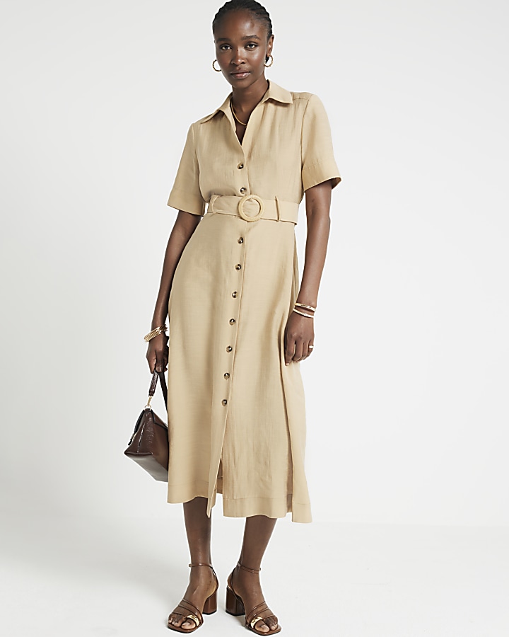 Belted button up midi dress new arrivals